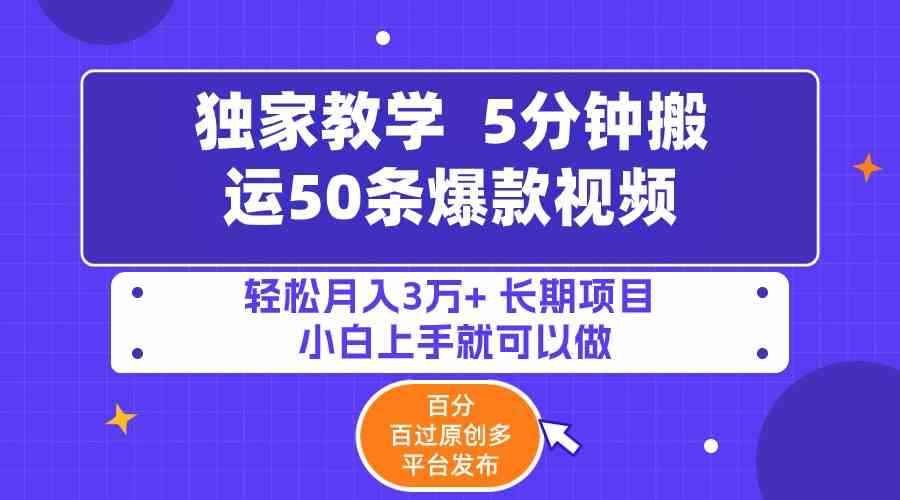 [短视频运营] (9587期)5分钟搬运50条爆款视频!百分 百过原创,多平台发布,轻松月入3万+ 长期… |