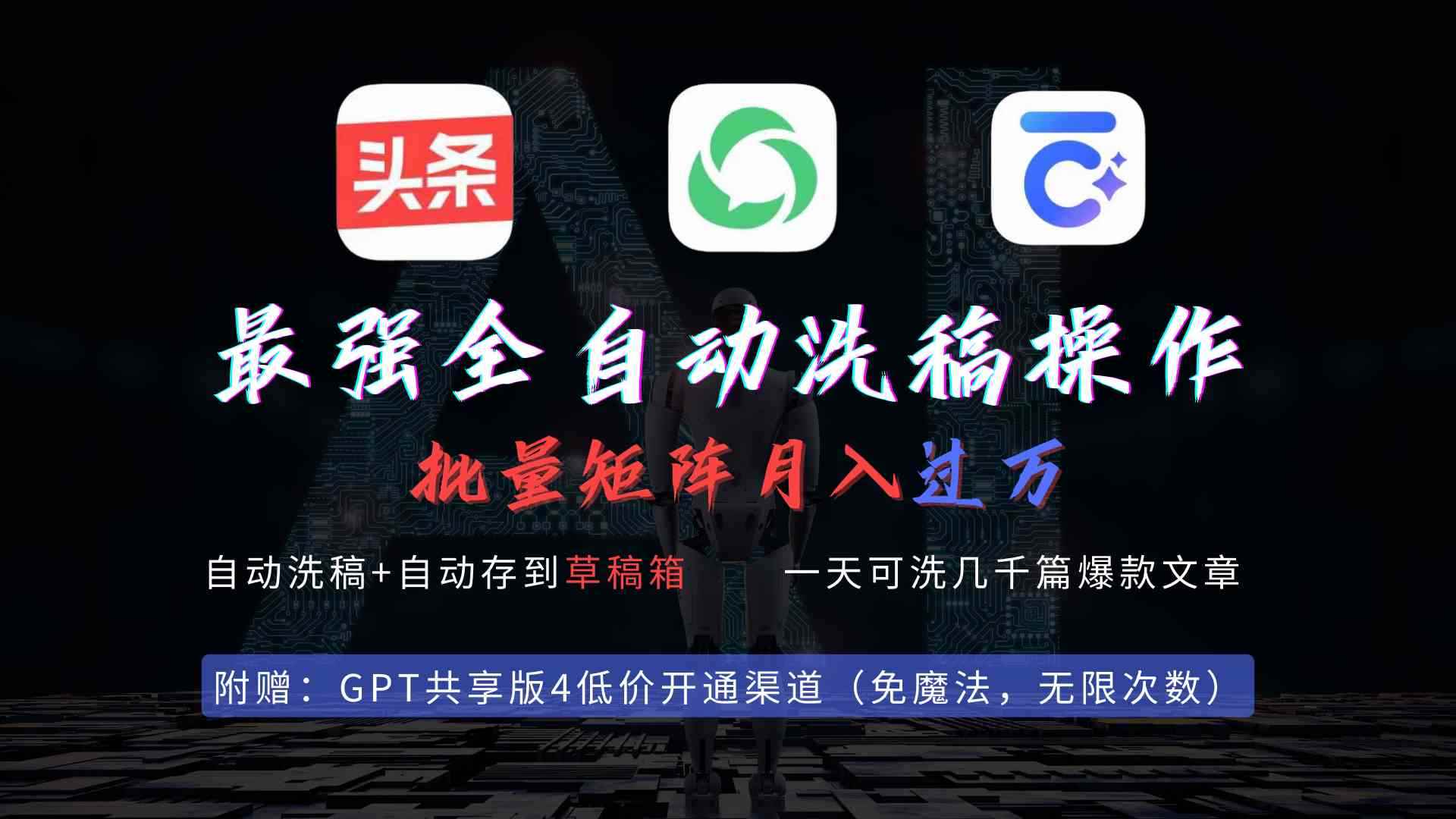 [热门给力项目] (9318期)最强全自动一键洗稿存稿操作,批量出爆文,头条,公众号都能用,月入过w |