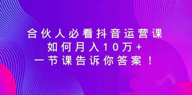 (8824期)合伙人必看抖音运营课,如何月入10万+,一节课告诉你答案!