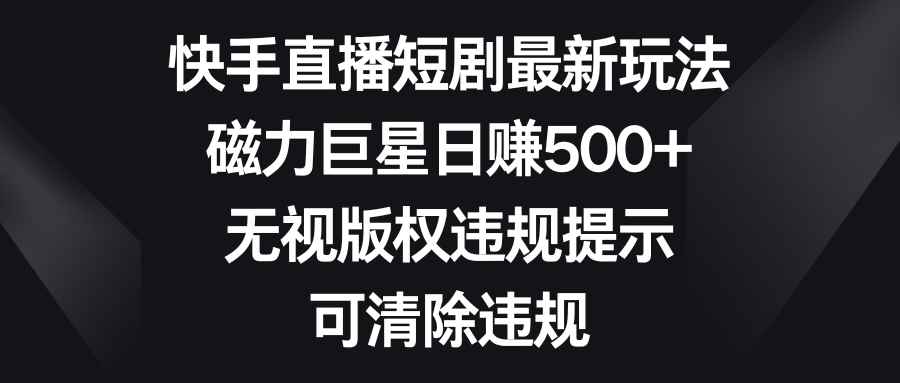 (8772期)快手直播短剧最新玩法,磁力巨星日赚500+,无视版权违规提示,可清除违规 |