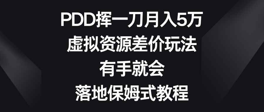 [热门给力项目] (8751期)PDD挥一刀月入5万,虚拟资源差价玩法,有手就会,落地保姆式教程 |