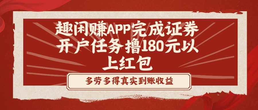 [热门给力项目] (8730期)趣闲赚APP完成证券开户任务撸180元以上红包 |