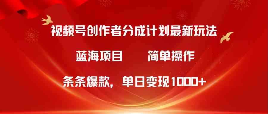[短视频运营] (10093期)视频号创作者分成5.0,最新方法,条条爆款,简单无脑,单日变现1000+ |