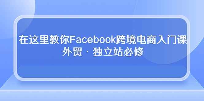 [热门给力项目] (10259期)在这里教你Facebook跨境电商入门课,外贸·独立站必修 |