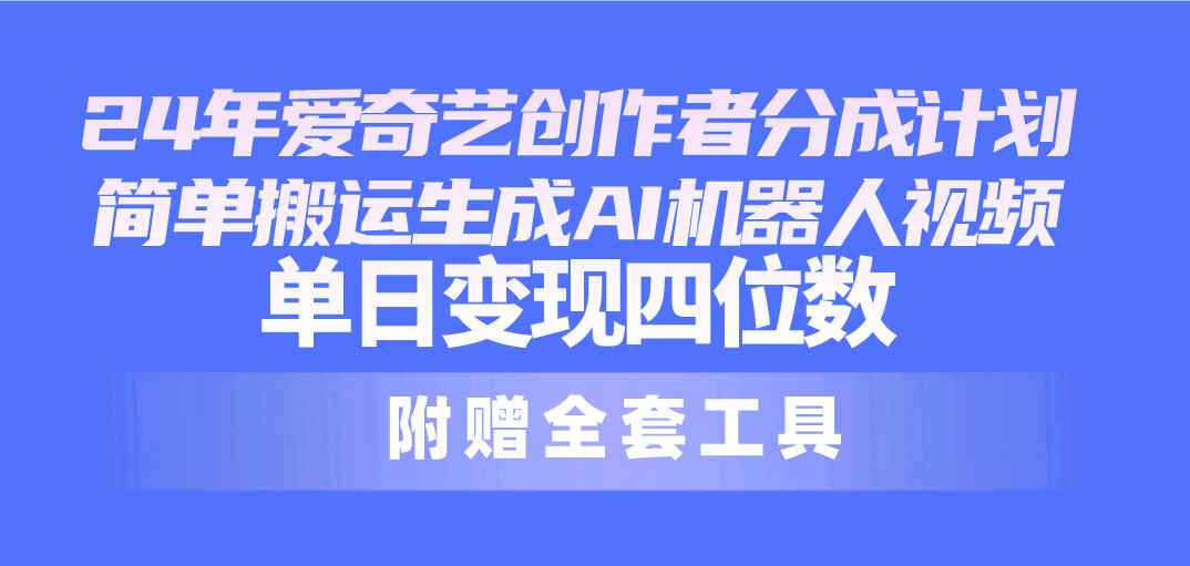 [短视频运营] (10308期)24最新爱奇艺创作者分成计划,简单搬运生成AI机器人视频,单日变现四位数 |