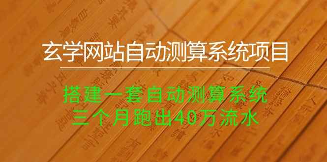 [热门给力项目] (10359期)玄学网站自动测算系统项目:搭建一套自动测算系统,三个月跑出40万流水 |
