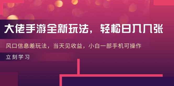 [热门给力项目] (10401期)大佬手游全新玩法,轻松日入几张,风口信息差玩法,当天见收益,小白一... |