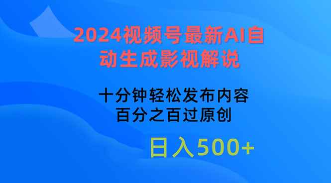 [热门给力项目] (10655期)2024视频号最新AI自动生成影视解说,十分钟轻松发布内容,百分之百过原... |
