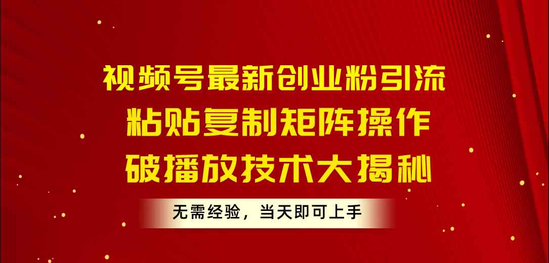 [引流-涨粉-软件] (10803期)视频号最新创业粉引流,粘贴复制矩阵操作,破播放技术大揭秘,无需经验... |