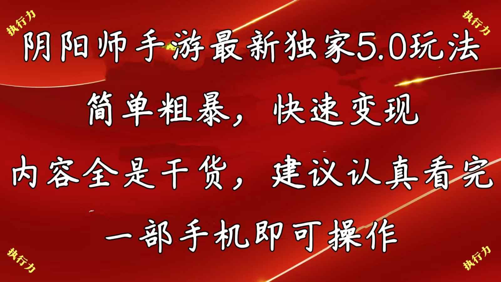[热门给力项目] (10880期)阴阳师手游最新5.0玩法,简单粗暴,快速变现,内容全是干货 |