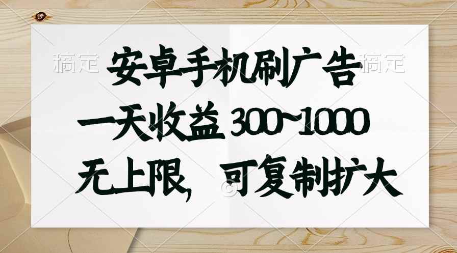 [热门给力项目] (11079期)安卓手机刷广告。一天收益300~1000,无上限,可批量复制扩大 |