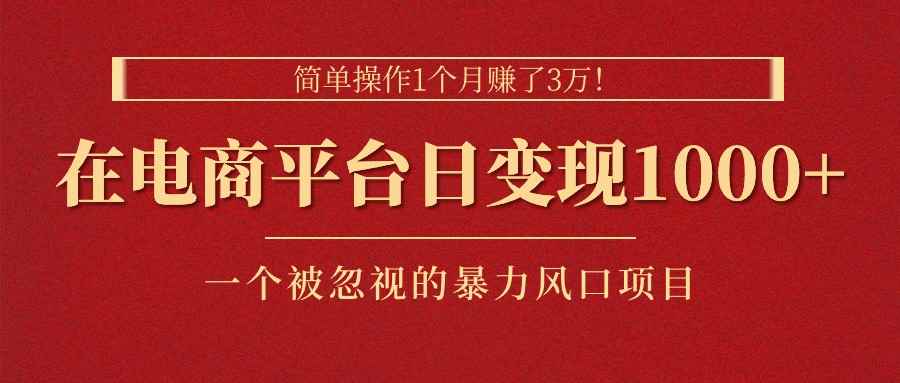 (11160期)简单操作1个月赚了3万!在电商平台日变现1000+