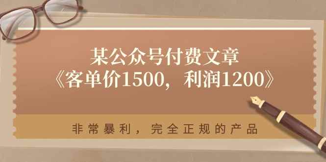 (11215期)某公众号付费文章《客单价1500,利润1200》非常暴利,完全正规的产品