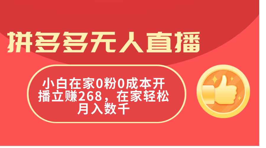 (11521期)拼多多无人直播,小白在家0粉0成本开播立赚268,在家轻松月入数千 |
