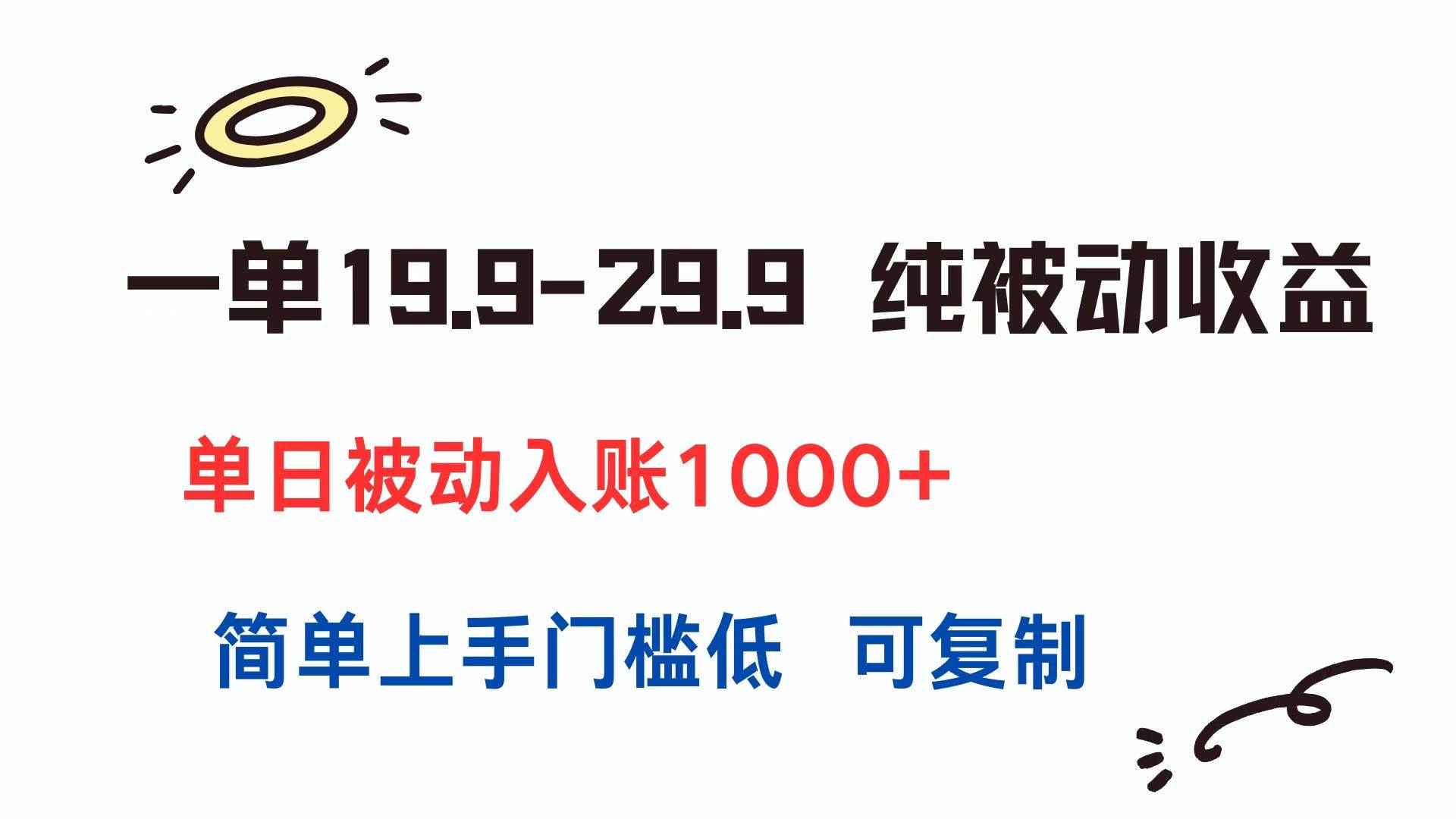 (15298期)一单19.9-29.9 纯被动收益 单日被动入账1000+ 简单上手门槛低 可复制 |