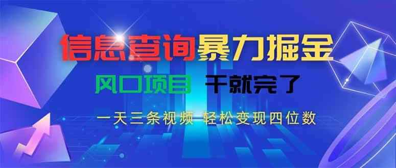 (15516期)信息查询暴力掘金,一天三条视频 轻松变现四位数,风口项目干就完了 |