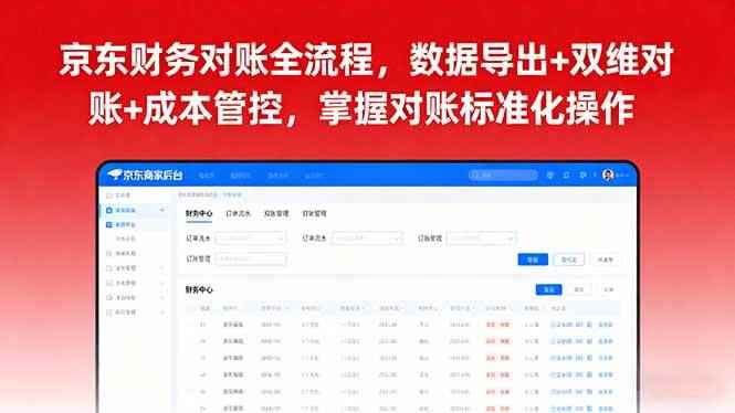 [国内电商] (16031期)京东财务对账全流程,数据导出+双维对账+成本管控,掌握对账标准化操作 |