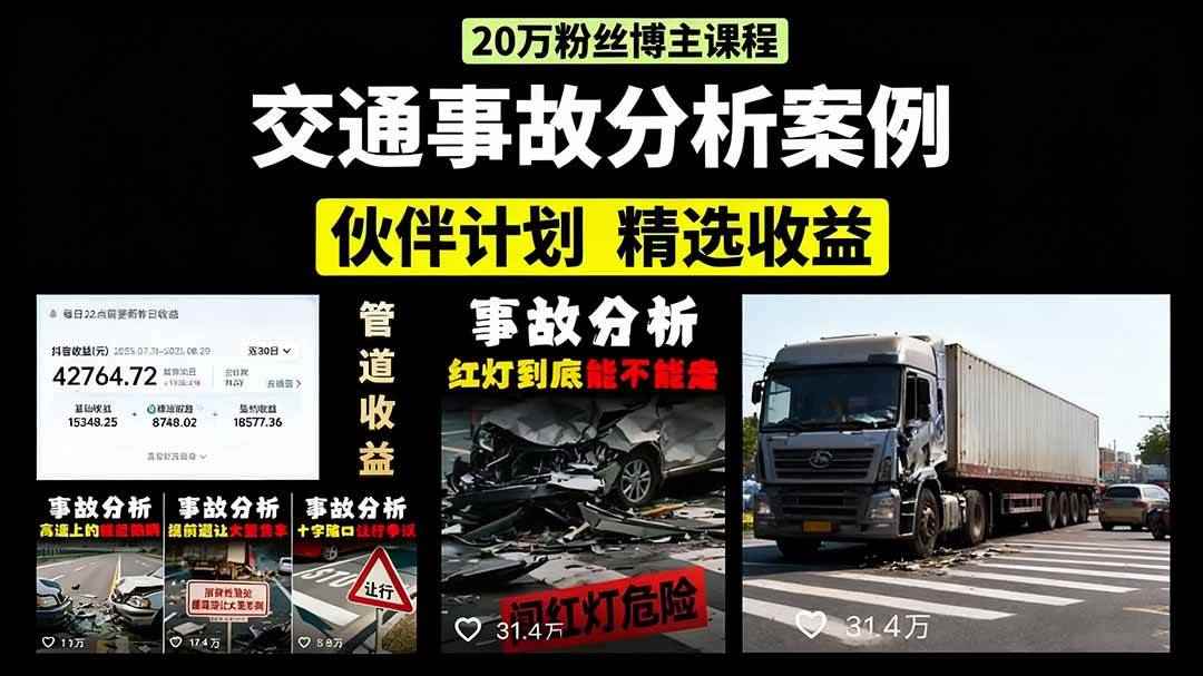 (15995期)交通事故分析案例短视频,剪辑技巧+文案模板+配音教学+快速起号 月收益2w+