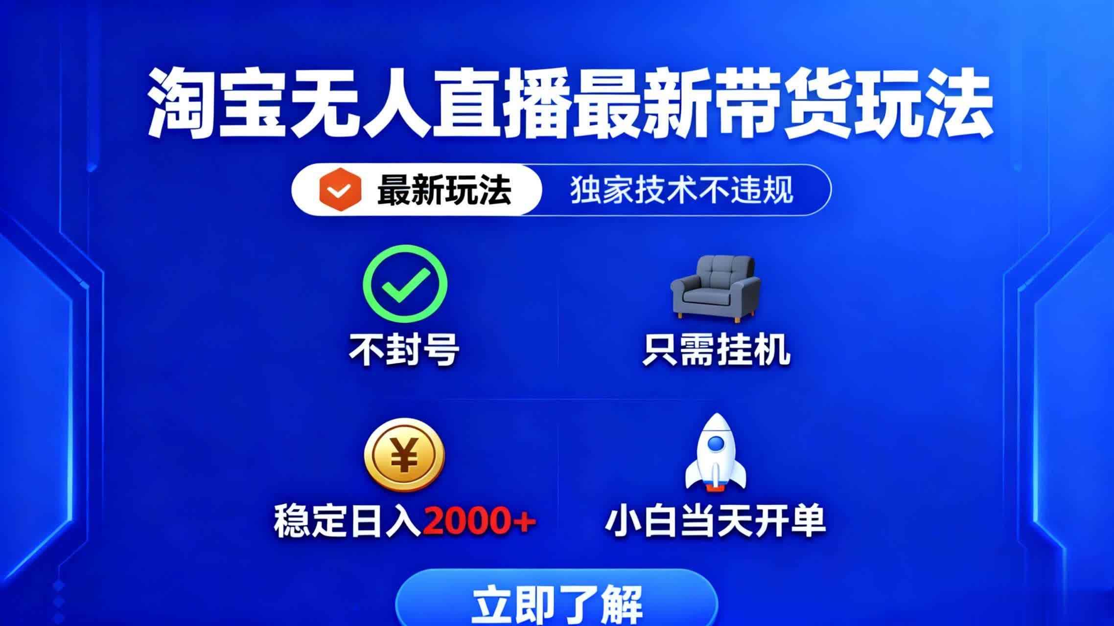 (16327期)淘宝无人直播最新带货最新玩法, 独家技术不违规,也不封号,只需要挂…