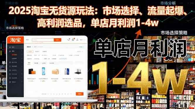[无货源] (16445期)2025淘宝无货源玩法:市场选择、流量起爆、高利润选品,单店月利润1-4w |