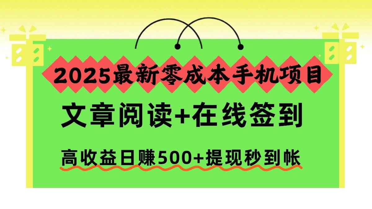 (16598期)2025最新零成本手机项目,文章阅读+在线签到,高收益日赚500+提现秒到帐 |